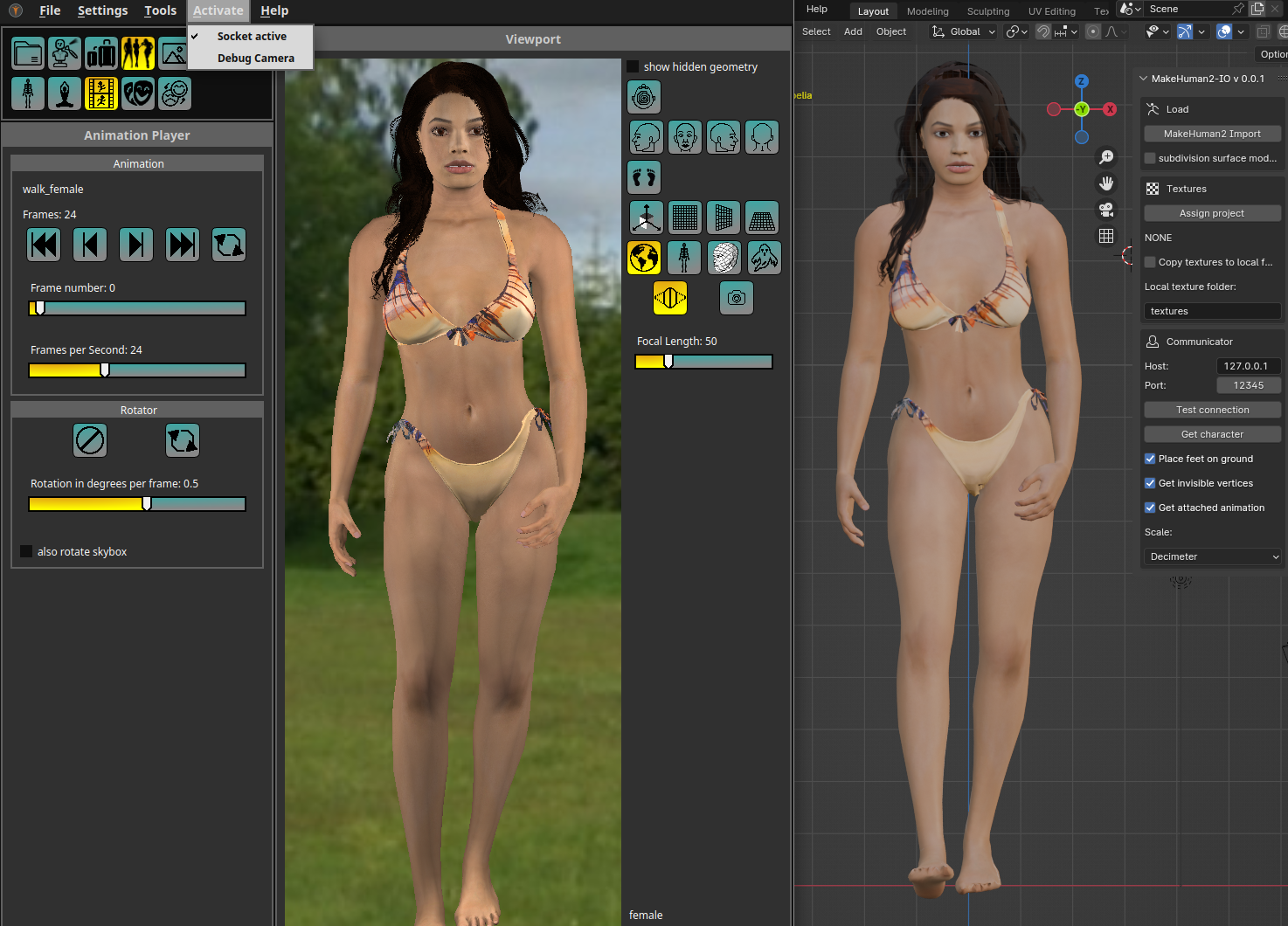 At the moment the socket is only a second way to import the character. There will be a few more features. But not everything makes sense. For example one can import different characters or replace an existing one. So a "keep in sync" would not always be, what is wanted. There is also a problem with definition, where the textures should be in the end. When one saves something from blender, paths should be relative etc.