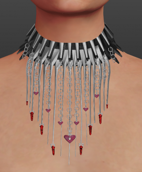 A necklace for makehuman female models in a goth statement drape fashion. Quad model. Made to be used with the plain fantasy dress, with no chains, but works alone also. One texture included.