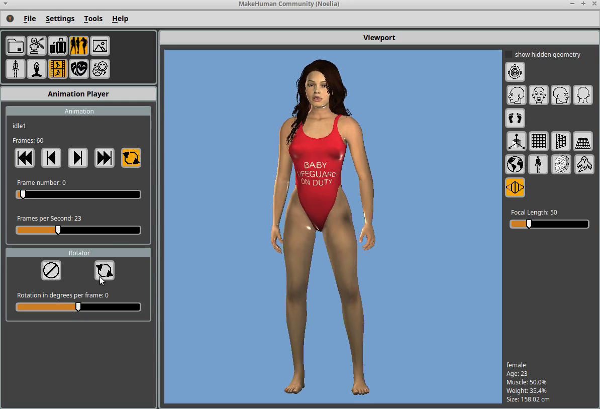 Maybe also some gimmicks, like when no animation is selected, the character could be on a turntable, etc. Ah yes, a better visualization of the skeleton will follow, also.