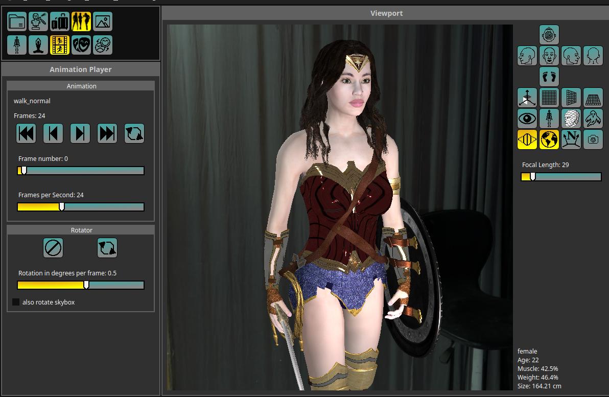 In between I did these measurement targets, which create a visual representation inside makehuman. It is an OpenGL overlay of lines always in foreground. The vertices are now defined in the target description and will be no longer inside program code. I found some unused code to calculate cup sizes. Well, so I decided to generate a character info, with a bunch of values as shown in the image below. As long as you have a female older than 8 (that's what I found in the internet, although usually it starts with 11 to 14) cup sizes are calculated. Size are from AA to O, last one would be boobs-on-a-stick, because of bust/underbust ratio calculation. Today I started with randomization.