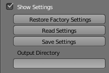 - Show Setting. The settings include the author name and the export path. It's possible to save and restore the settings.