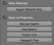 - Show Materials. This shows a button to export the materials only. This is useful when there are no changes to the geometry, but only to the material, in order to avoid recalculating everything.